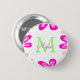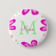 Macaron Rond 5 Cm monogramme de fleur rose ajouter nom lettre feuill