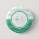 Donnez à votre style personnel un look girly contemporain avec ce bouton vert et blanc tendance avec un motif de pois en cercle mod. N'importe quelle fille moderne aimerait avoir son nom et monogramme initial personnalisé sur ce design preppy et moderne.