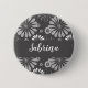 Macaron Rond 5 Cm Motif floral blanc et gris