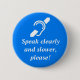 Symbole international pour le sourd ou l'audition - altérée au-dessus des mots, "parlez clairement et plus lent, svp ! Blanc sur l'arrière - plan bleu moyen. Il est beaucoup plus facile indiquer le bouton de 3 pouces.