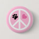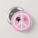 Un bouton épinglé amoureux des animaux avec un signe de paix blanc, coeur rose et empreinte de patte.