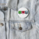 Adorable ours de panda dans un carré bleu à côté d'un signe vert de paix et d'un coeur rouge sur un beau bouton animal. J'adore les fourrés de panda mignons.