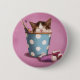 Chaton adorable faisant une sieste dans un pot bleu de crayon de point de polka, peint par l'artiste Maryline Cazenave.