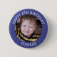 Photo personnalisée, âge et nom Bouton bleu anniversaire.