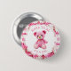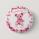 Pink and white crocheted teddy bear girl's baby shower Nana to be button. . An adorable pink teddy bear crocheted with pink and white yarn adds the sweetest touch. Get one for all the important family members at the baby shower.