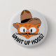 Hoss est un terme de fraternité et fait référence à quelqu'un qui est grand et fort et a un bon coeur! Ce bouton enchanteur présente le chat moustache de dessin animé Señor Gato™ dans son casquette cowboy de 10 gallons! Ci-dessous l'image lit QUOI HAUT HOSS? La couleur Arrière - plan est gris clair.