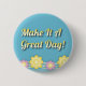 Rendez lui un jour splendide les caractéristiques inspirées et inspirantes de bouton les fleurs roses et jaunes colorées avec le texte jaune. Perfectionnez le bouton pour que les personnes de motivation lui fassent un jour splendide ! Le bouton intéressant pour des réceptionnistes, infirmières, médecins, dentistes, portant à l'église, vérifient des commis, des employés, des patrons, des volontaires et plus.