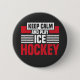 Bouton de thème de hockey avec le texte noir, blanc et rouge qui dit Conserver le calme et jouer le hockey sur glace!