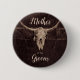 Rustique crâne de vache taureau de l'ouest pays rodéo cowboy mariage mère du marié à être épingle bouton retour. Style ferme texture Brown. Ancien antiquité vintage sauvage de l'ouest. Cool, tendance, moderne ferme animal design personnalisé. Personnalisez votre typographie. Copyright de l'image Marg Seregelyi Photography.