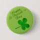Bouton avec un joyeux texte de la fête de St. Patricks avec un Shamrock irlandais vert pour la chance. Vous pouvez modifier le texte. Un beau trèfle vert quatre feuille est sur un arrière - plan vert. Vous pouvez modifier la couleur de l'arrière - plan si vous le souhaitez.