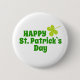 Bouton Saint Patrick avec un shamrock vert. Green Happy St. Patrick`s jour texte. Pour votre fête de la Saint Patrick ou un cadeau parfait.