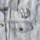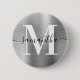 Créez votre propre nom personnalisé girly et des boutons monogrammés. Graphique en fausse feuille d'art numérique couleur argent. Monographie contemporaine en noir et blanc avec design élégant de calligraphie de style signature.