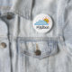 Mignonne épingle de badge avec un joli soleil jaune qui regarde à partir d'un grand nuage bleu avec un modèle ci-dessous pour ajouter votre nom, citation, texte ou supprimer pour laisser vide.