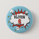 Superhero Comic Speech Bubble Boy Birthday bouton. Ajoutez votre nom et votre âge. Des autocollants d'anniversaire super-héros amusants pour les garçons.
