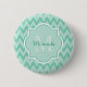Macaron Rond 5 Cm Trendy Mint Green Chevron Zigzag Nom et Monogramme