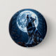 Illustration aérienne d'un loup hurlant sur la lune dans une teinte bleu hyper réaliste. Bouton idéal pour quiconque aime les loups.