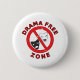 Un panneau de transit avec les mots : zone sans drame. Boutons personnalisés pour sacs à dos, chemises et plus. Texte avec des images des masques grecs de comédie et de tragédie. Effet désordonné appliqué au design.
