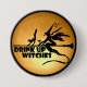 Conception avec le dicton "Buvez des sorcières" avec une sorcière sur un balai avec un chat et un martini.