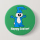Joyeux Pâques mignon et excité bouton lapin de dessin animé. Un bon bouton pour quelqu'un célébrant Pâques. Il présente un lapin de dessin animé avec une expression excitée sur un arrière - plan vert.