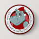 Personalized Christmas button with an illustration of a cute happy hippopotamus with a red and white Santa Claus hat; Christmas holidays design with a customizable text template for your name or message