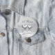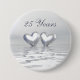 Bouton avec mon oeuvre originale d'une scène couleur argent avec deux coeurs argentés flottant sur l'eau. Le texte personnalisable dit "25 ans".