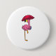 Macaron Rond 7,6 Cm Flamant rose à la pluie avec parapluie