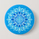 Bouton dans un mandala texturé batik / médaillon motif dans les tons aqua, turquoise et bleu cobalt sur un arrière - plan turquoise