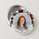 Le bouton d'hommage parfait pour les amis et la famille à porter à un service funéraire ou commémoratif avec une image de votre être aimé et les mots "dans la mémoire aimante" et leur nom. Le design comprend une aquarelle bordeaux design floral et un script de calligraphie.