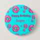 Macaron Rond 7,6 Cm Joyeux anniversaire crème rose beignets bleu