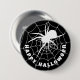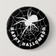 Happy Halloween éffrayante araignée noire et blanche rampant sur un badge de bouton cobweb. Le texte est personnalisable pour que vous puissiez ajouter votre propre message