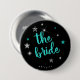Lancez la fête avec ces boutons amusants "Disco Bachelorette" en argent scintillant et sarcelle sur fond noir. La typographie "la mariée" qui attire l'œil est accentuée par des étoiles. Ajoutez la date de votre événement en utilisant le modèle fourni. Recherchez ID925 pour voir d'autres produits de la collection tendance.