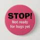 Message simple qui dit STOP, NOT READY FOR HUGS ENCORE dans la typographie noir et blanc contre un arrière - plan rose. Le texte blanc est PERSONNALISABLE, vous pouvez donc créer votre propre message personnel "Keep Away" ! Une façon idéale de résoudre le dilemme de l'accolade ou du coude. Disponible en d'autres couleurs.