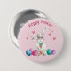 Aquarelle adorable Le lapin de Pâques embrasse une carotte qu'il économise pour un goûter tard dans la nuit. Il est entouré de jolis oeufs de Pâques colorés. Il dit Hoppy Pâques au sommet, parmi quelques coeurs roses et il est tout mis contre un arrière - plan de rose avec des pois blancs. Le Pâques Hoppy est personnalisable pour que vous puissiez le changer si vous le souhaitez. Changez-le pour Happy Spring (ou Hoppy Spring) ou tout ce que vous voulez. Les petites filles adoreraient avoir une épingle de Pâques comme ça !