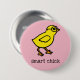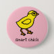 Bouton de Kawaii comportant des verres portant le poussin avec le slogan "poussin futé". 3" de grande taille