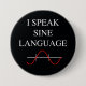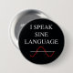 Un design de texte amusant avec un petit jeu de mots pour les nerds mathématiques.. celui-ci dit "Je parle la langue de la sine" au-dessus d'une onde sinus rouge sur des lignes de graphique simples.