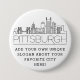 Un bouton personnalisable représentant la belle ville de Pittsburgh, Pennsylvanie. Ce bouton présente une illustration stylisée de la ligne d'horizon unique de la ville et son nom en dessous. Sous le nom de la ville se trouve un endroit pour votre slogan ou déclaration unique sur votre ville préférée.