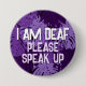 Faites connaître vos besoins médicaux avec ce badge tropical de JessicaAmber. Ce bouton porte le slogan "Je suis sourd. S'il vous plaît parlez haut.' dans une police audacieuse, sur un motif de feuilles de palmiers violets. Vous pouvez modifier le texte au besoin. Un bel accessoire pour vos prochaines vacances d'été. 🌿 Pour plus d'épingles de surdité, visitez mon magasin Zazzle.com/Elder_Vitality 🌿 Pour des commandes personnalisées, envoyez-moi un message sur Zazzle