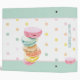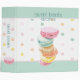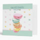 Illustration d'une tour délicatement équilibrée de macarons rose, vert, orange, marron et jaune. Une spécialité française et une carte ou un cadeau délicieux pour un ami spécial ou qui aime les sucreries.
