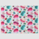 Tissue paper with a watercolor pattern of sweet and delicious french macarons tumbling all around. Pretty watercolors - pink, red, and teal green. Random berries floating around too including strawberries, cherries and blueberries. Fresh and delicious. Set on a green polka dot background.