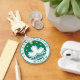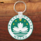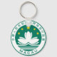 The regional emblem features the same design elements as the regional flag of Macau in a circular setting. The outer white ring is shown with the caption of the official name of the territory in traditional Chinese characters (as opposed to the simplified form): "中華人民共和國澳門特別行政區" (Macau Special Administrative Region of the People's Republic of China) and the Portuguese short form, "Macau".