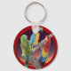 Photograph in vivid colours of a Military Macaw, Blue and Gold Macaw and a Scarlet Macaw all perched together on a tree branch forming a triangle.