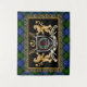 This MacEwen wall tapestry is a stunning piece to have in your home. Featuring framed lion supporters, on either side of the clan badge, crossed basket hilt claymore swords and a golden thistle. Tapestries were hung on castle walls to keep the warm in from the cold stone behind them. Comes in all sizes.