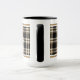 Coffee mug with the MacGuinness clan tartan, a classic plaid pattern in black, tan, and creamy white. Five styles available in two sizes.