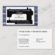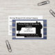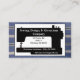 Ce carte de visite personnalisable présente la silhouette d'une machine à coudre. La machine à coudre est en noir. Le nom et les coordonnées de votre entreprise sont écrits en blanc sur la machine à coudre. L'adresse de l'entreprise est écrite en noir sous le bras. Il y a de la place pour plus d'informations de contact sur le dos. La machine à coudre est sur un arrière - plan blanc. La bordure extérieure est une photo de tissu de chemise en coton rayé bleu. Vous pouvez modifier les couleurs du texte et de l'arrière - plan. Vous pouvez également éteindre la photographie du tissu pour le tissu qui représente votre entreprise. Une bonne carte pour les tailleurs, couturiers, couturiers, transformateurs, couturiers, brodeurs, couturiers, couchettes, et toute autre entreprise de couture. Il pourrait aussi s'agir de ceux qui réparent ou vendent des machines à coudre. Et des magasins de tissus.