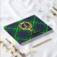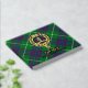 Clan MacIntyre crest badge surrounded by a strap and buckle over tartan background. Custom front, back and spine text.