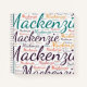 Mackenzie. Show and wear this popular beautiful female first name designed as colourful wordcloud made of horizontal and vertical cursive hand lettering typography in different sizes and adorable fresh colours. Wear your positive american name or show the world whom you love or adore. Merch with this soft text artwork is a great present, not only in womens history month, or birthday gift.