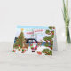 Mackinac Bridge Christmas Card with Woodland animals including reindeer, fox, Santa, red cardinal and Christmas tree.