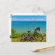 Postcard featuring a photo of a purple bicycle sitting along the coastline of the beautiful waters of Lake Huron in Mackinac Island, Michigan, United States. Looking for more prints or products? Feel free to visit my store: http://www.zazzle.com/timelessmomentsphtgy