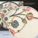 A fresh take on classic Mackintosh-inspired design, this elegant ceramic tile features stylized roses arranged like a faux stained-glass panel. Clean geometric framing, bead-chain details, and sweeping curved stems create a refined Art Nouveau look with a hint of Art Deco structure. The soft ivory background and muted palette of deep teal, sage green, and dusty blush pink are finished with warm metallic-gold outlines for a layered, dimensional effect. Perfect as a decorative wall accent, kitchen backsplash detail, bathroom feature tile, fireplace surround, or gift for lovers of vintage floral design.