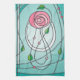 This design is inspired by the art nouveau style of Charles Rennie Mackintosh, finished with a stained glass effect. Lovely shades of blue-green, pink and leaf-greens.